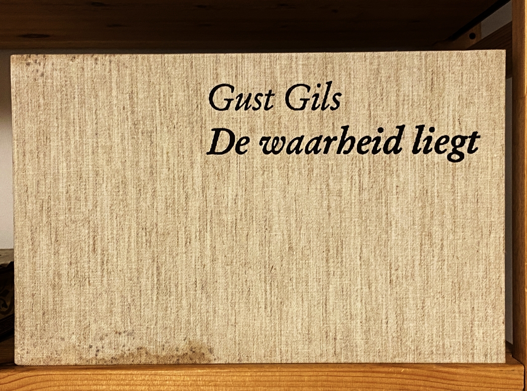 13. GILS, Gust De waarheid liegt. (Met een originele sculptuur en een handgeschreven gedicht door de auteur). [Antwerpen], Jef Meert, 1997. Losbladig in omslag (als uitgegeven) in zeer ruime linnen overslagdoos (Boekbinderij Jansen; 22 x 35 x 11 cm). (64) p. Gedrukt op Zerkall Wild Gevergeerd 165 gram in een oplage van slechts 30 door de dichter genummerde en gesigneerde exemplaren. 1e druk. De overslagdoos is enigszings gevlekt (vooral aan de onderzijde, dus dat zie je meestal niet).