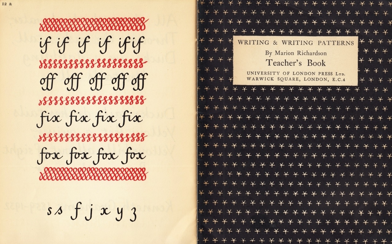 * Deze op kinderen gerichte cursus voor beter schrijven door de Britse tekenlerares Marion Elaine Richardson (1892-1946) was zeer populair. Deels in alfabetten en eenvoudige oefeningen, deels met poëzie, o.a. William Blake. Dit is een complete set van de boekjes – de serie wordt zelden bij elkaar aangetroffen.