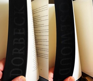* De vijftigste druk van deze roman, 55 jaar na de eerste druk! Schitterende, plechtige vormgeving van Christoph Noordzij, met een verrassing op de snede: een dubbele fore-edge painting die uit het duister opdoemt, zie hieronder. Met dank aan Cor Wiersma, die ons erop opmerkzaam maakte.