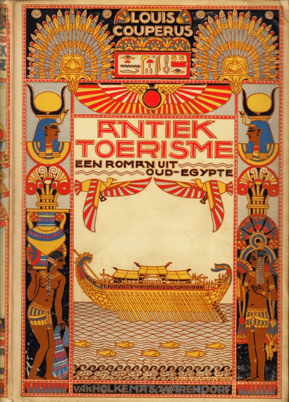 8. COUPERUS, Louis Antiek toerisme. Roman uit Oud-Egypte. Amsterdam, Van Holkema & Warendorf, 1911. Gedecoreerd linnen (ontwerp André Vlaanderen). 224 p. Niet afgesneden. 1e druk. De bandtekening is gaaf, de rug vrijwel. Achterplat wat gevlekt, rechtsboven deukje. Binnenin geen roest, geen naam.