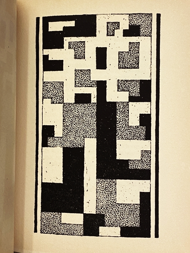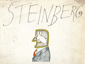* De tekeningen, die rijk zijn aan letters, herinneren enigzins aan Saul Steinberg. Opvallende typografie. Uit de collectie van Huib van Krimpen.