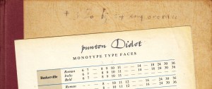* Tabellenboek voor de typograaf, uit de bibliotheek van een nog jonge Gerrit Noordzij (1931-2022), met zijn fraai gecalligrafeerde naam in inkt op het voorste schublad. Voorop, het is nogal vervaagd, een technische notitie. In de marge van een pagina vinden we een vlot getekend alfabet. Op een los inliggend tabelblad uit een ander boek schreef hij beeldschoon ‘punten Didot’.