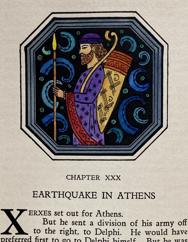 * Engelse vertaling van Xerxes (1919). Curieus exemplaar: een latere eigenaar heeft 79 van de 87 vignetten fijnzinnig met de hand gekleurd! De niet-gekleurde zijn duplicaten van vignetten die al op andere pagina’s staan. Mooi gedaan!