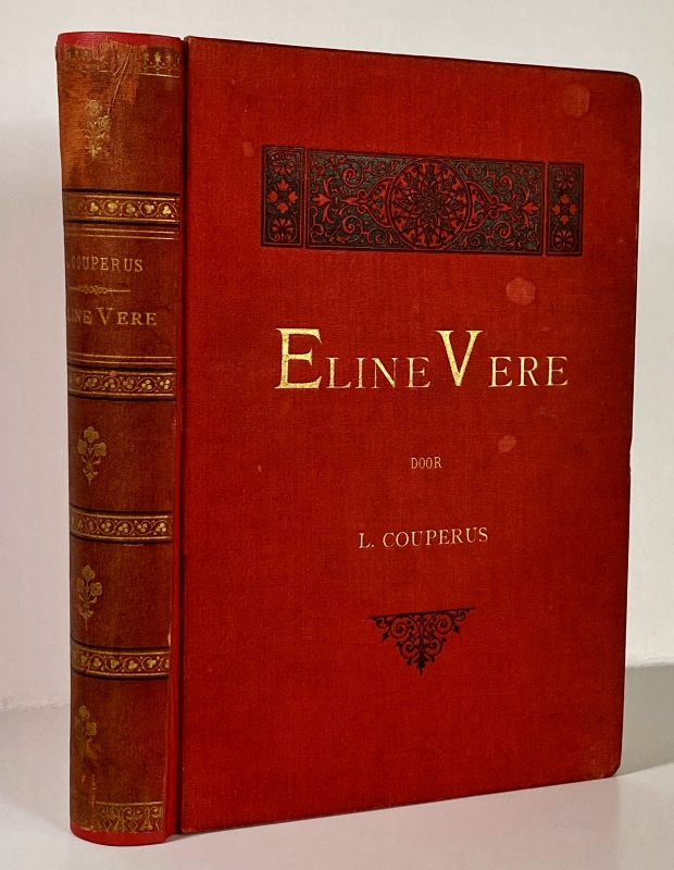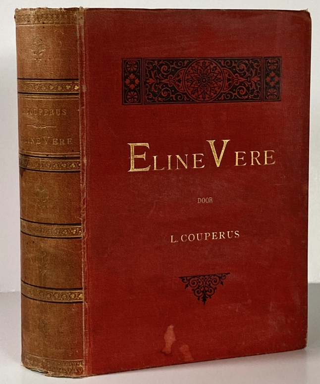 1. COUPERUS, Louis Eline Vere. Een Haagsche roman. Amsterdam, Van Kampen, [1890]. Twee delen in één band. Linnen. 244, 260 p. 2e druk. Rug aan kop en voet wat sleets, verbleekt. Enkele vochtvlekjes op voorplat, boekblok scheefgelezen.