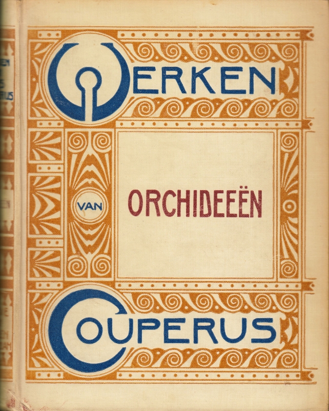 32. COUPERUS, Louis Orchideeën. Een bundel poëzie en proza. (Werken-band). Amsterdam, Veen, [1905]. Gedecoreerd linnen (ontwerp H.P. Berlage) over voor- en achterkant. (8), 208 p. 2e druk. Achterplat deels licht verbruind, exlibrisstempel op binnenzijde voorplat, modern exlibris op schutblad.