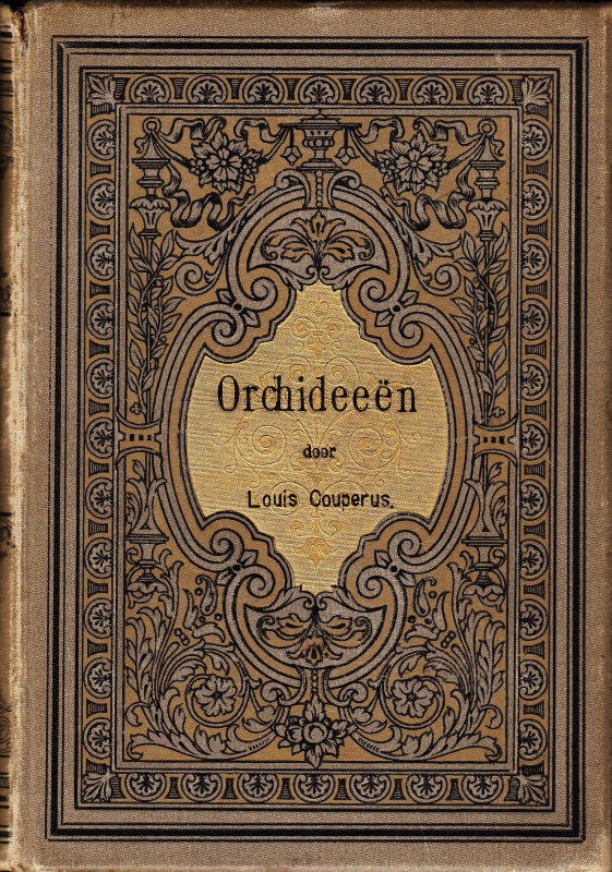 16. COUPERUS, Louis Orchideeën. Een bundel poëzie en proza. Amsterdam, Rössing, 1886. Versierd en verguld bruin linnen met versierde schutbladen. Kop verguld. (8), 208 p. 1e druk. Exlibris, enkele hakjes en plekjes op de band, verder een zeer goed exemplaar.
