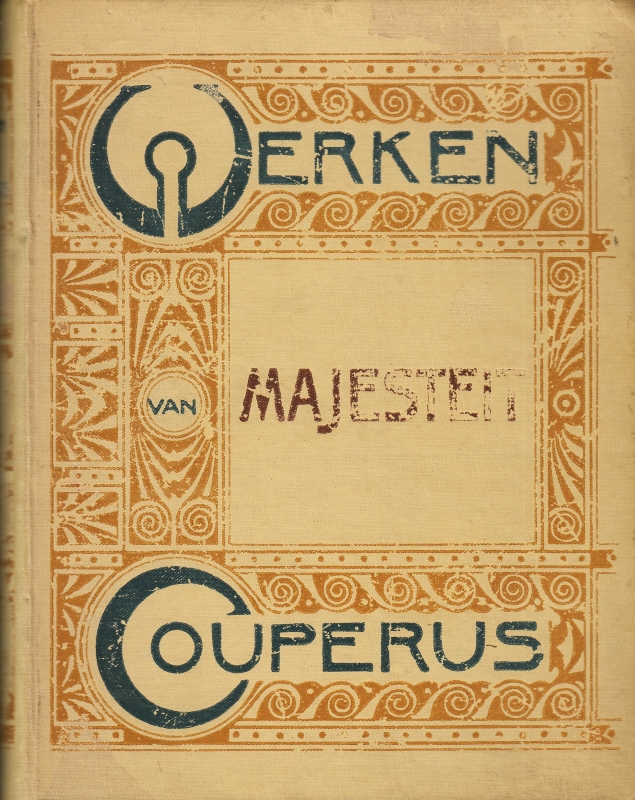 29. COUPERUS, Louis Majesteit. (Werken-band). Amsterdam, L.J. Veen, [1905]. Gedecoreerd linnen (‘Werken van Couperus’, ontwerp H.P. Berlage). (4), 272 p. Met illustraties van W. Vaarzon Morel. 3e druk. Band nogal geschaafd. Waterrandje langs enkele pagina’s.