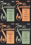 15. FREUNDSCHAFT, Die Die Freundschaft. Jaargang 12 Nr. 1-12, 1930. Berlin, Phoebus-Verlag Kurt Eitelbuss, 1930. 24 x 17 cm. 12 nummers, alle in hun originele geniete omslagen van stijf papier. 192 p. totaal. 1e druk. Zeer gaaf.