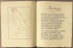 42. RIMBAUD, Arthur Antique. (Met een tekening van Giovanni Costetti). [Utrecht], (G.M. van Wees, 1944). 29,5 x 23,5 cm. Vouwblad. Gedrukt naar calligrafie van Susanne Heynemann in een oplage van 75 genummerde en door calligrafe en illustrator gesigneerde exemplaren.