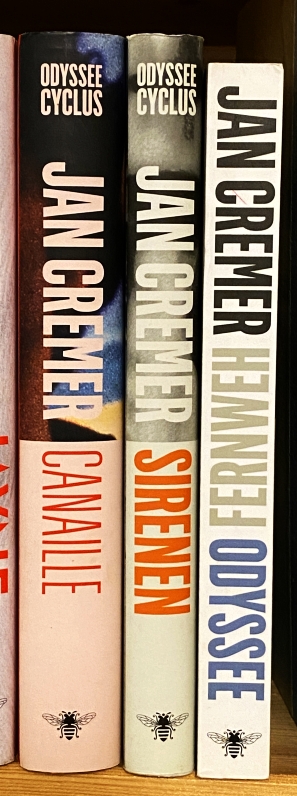 13. CREMER, Jan De Odyssee-cyclus: Fernweh, Sirenen & Canaille. (3 boeken). Amsterdam, De Bezige Bij, 2016, 2017, 2019. Complete serie ‘Odyssee’. Garenloos (1), karton met stofomslag (2 en 3). 290, 240, 360 p. 1e, 3e en 1e druk. Sirenen met leesvouwen op de rug, de twee gebonden boeken vrijwel als nieuw.
