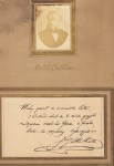 7. BUSKEN HUET, Conrad P.C. Hooft, over het Tooneel. (Een citaat uit Hoofts Nederlandsche Historien). Handschrift in inkt. Gesigneerd en gedateerd ‘Parijs, April 1883’. 10,0 x 16,4 cm. Geplakt op (beschadigd) oud karton (29 x 19 cm) waarop ook een portret van Busken Huet in staalgravure door P.J. Arendzen is geplakt (vgl. Conrad Busken Huet. Schrijversprentenboek 25, (p. 55, afb. 225). Ovaal, 7,6 x 13,5 cm).