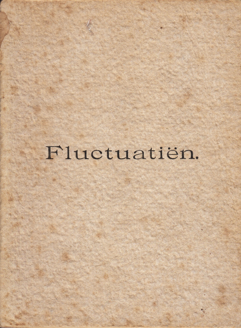 49. TIENHOVEN Jr., Gijs van Fluctuatiën. Amsterdam, eigen beheer, 1896. Ingenaaid met omslag van stevig grijs papier. 96 p. Gedrukt in 50 genummerde exemplaren. 1e druk. Rugje iets ingescheurd, roestvlekjes op omslag. Enkele foutjes oudtijds met een fijn pennetje verbeterd.