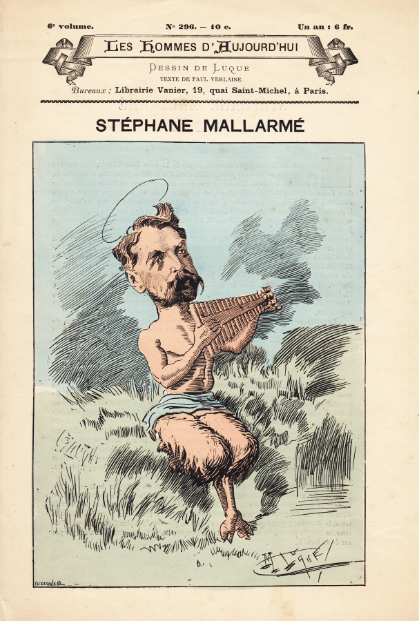 * Tekst van Paul Verlaine (in eerste druk), met aan het eind een sonnet, en een in pochoir gekleurde karikatuur door Manuel Luque: Mallarmé met faunspootjes en panfluit, bekroond met een heiligenschijn. Les Hommes d’Aujourd’hui nr. 296.