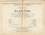 * Uiterst zeldzaam concertprogramma van die andere Elektra-compositie, niet van Richard Strauss maar van Diepenbrock, waarbij de verzenvertaling van Boutens gedeclameerd werd door bekende acteurs, hier Louis van Gasteren, Ferd. Sterneberg, Magda Janssens, Jacqueline Royaards en Paul Huf. In het begin van de jaren twintig herhaaldelijk opgevoerd, maar daarna ook nog wel zo eens in de tien jaar.
