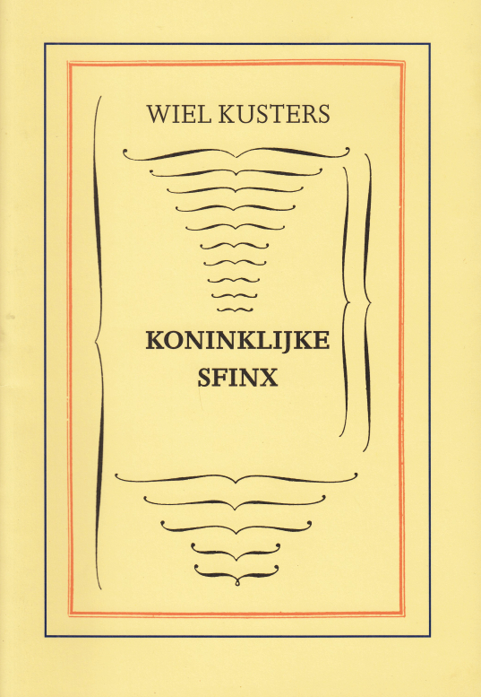 18. KUSTERS, Wiel Koninklijke sfinx. Landgraaf, Herik, 1989. Ingenaaid. (20) p. Gezet uit de Joanna en gedrukt in zwart en oranje op Propoff-papier in een oplage van 225 genummerde en gesigneerde exemplaren. 1e druk.