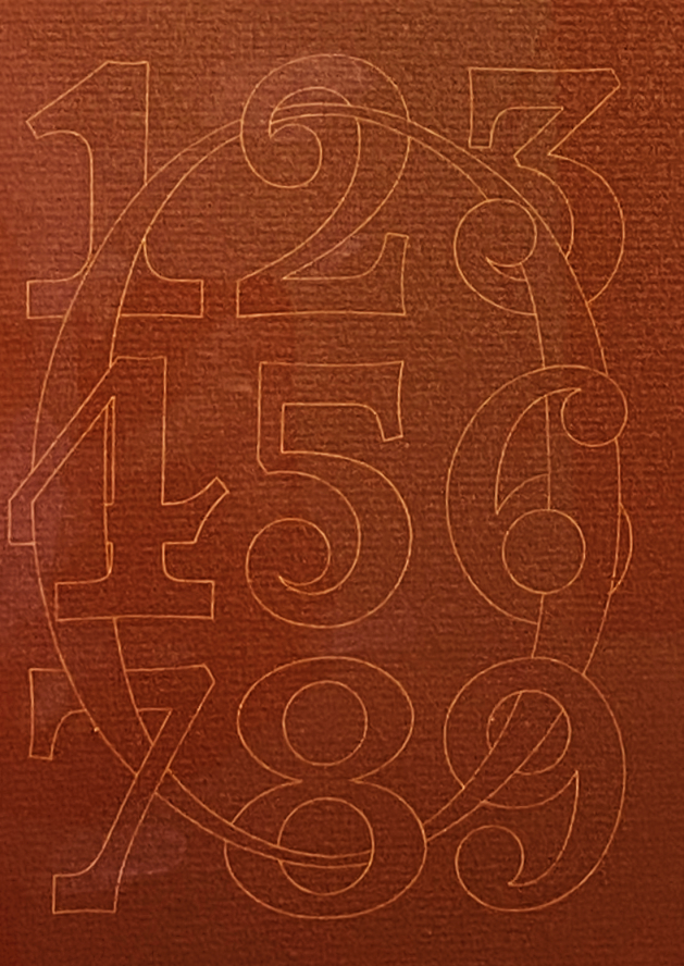 Dit is een schitterend ontworpen boek met 18 alfabetten getekend naar verschillende oude tradities en nieuwe invallen: middeleeuwse versale letters die hun ruggetjes delen, boustrophedon = alternerend van links naar rechts en van rechts naar links geschreven; ongewone ligaturen, onbeschrijflijke systematieken, een verticaal alfabet, een tekening bestaand uit alle cijfers verenigd door de 0 (zie het linkerplaatje), kalligrafie met verrijkende inzichten – het is gewoon geweldig.