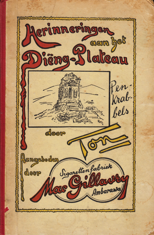 Grappige rijmpjes en tekeningen in de stijl van Wilhelm Busch over het Dieng Plateau, dat gelegen is in de caldera van een vulkaan in Midden-Java en een groot aantal vroegmiddeleeuwse hindoetempels bevat. De identiteit van auteur ‘Ton’ wordt onthuld in een bespreking in het Nieuws van den Dag voor Nederlandsch-Indië van 20 december 1929: het is ‘de heer C.G.Th. Kraemer die te Oengaran (onderneming Sido Redjo) woont’. Met de nodige goede wil kun je die naam ook in de handtekening lezen.