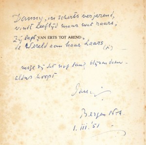 Met opdracht: ‘Voor Danny -/ van/ Jany./ Bergen N.H./ 27 Juli 1952’. Leeflang 21.