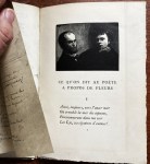 32. RIMBAUD, Arthur Ce qu’on dit au poëte a propos de fleurs. Avec un bois de J.-L. Perrichon d’après Fantin-Latour. Parijs, Le Livre, 1925. Halfperkament met verguld lederen rugschildje en gemarmerde platten (nette privéband, oorspronkelijk omslag meegebonden). (8), 20 p. Gedukt in een oplage van 80 genummerde exemplaren. 1e druk. Een enkel vlekje.