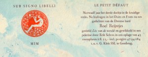 Drentse liefdesgedichten. Le petit défaut 3. Breugelmans 239.