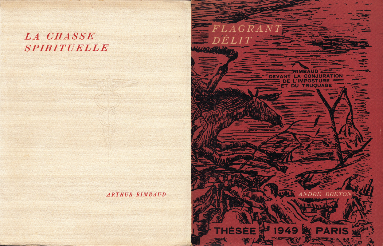 Bijgevoegd: André BRETON, Flagrant délit. Rimbaud devant la conjuration de l’imposture et du truquage. Paris, Thésée, 1949. Ingenaaid. 70 p. 1e druk.