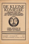 35. ROTTERDAM De kleine komedie. Orgaan van de tooneelvereeniging “De Rotterdammers”. Jaargang 1, nr. 1, 15 augustus 1923. (Niet verder verschenen). Den Haag, Uitgevers-Maatschappij Prometheus, 1923. Geniet. 24 p. Met twee reproducties naar houtsneden van Frans Masereel. Advertenties. 1e druk. Zeer gaaf.