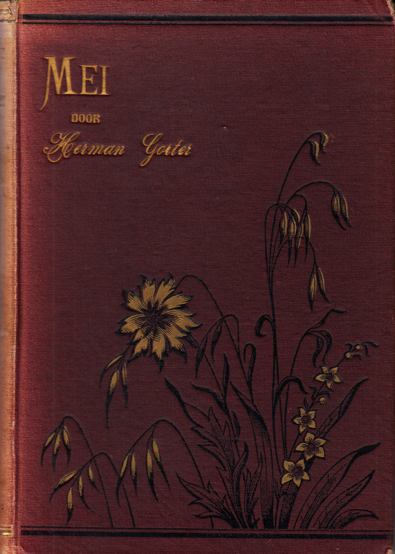 8. GORTER, Herman Mei. Een gedicht. Amsterdam, W. Versluys, 1889. Gedecoreerd linnen. (4), 194 p. 1e druk. Rug verschoten en aan de boven- en onderrand versleten, hoeken licht gebutst. Voorste kneep zwak (maar niet los), hoek (naam) van 8,5 x 2 cm. uit titelpagina geknipt. Redelijk, maar verzamelwaardig exemplaar van een tijdloze klassieker.