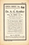 11. (KRÖLLER-MÜLLER). HEYNE, R. Open brief no. 1 aan Dr. A. G. Kröller resp. de Comm. Vennootschap Wm. H. Müller & Co., ‘s-Gravenhage, Lange Voorhout. (&): Open brief no. 2, 4, 5 en 6A. Hillegersberg, R. Heyne, 1931-1932. Vijf van de zes Open Brieven; nr. 3 ontbreekt, 6A is de laatst verschenen uitgave. Geniet. 16 p. elk. Nrs. 1,2 en 6A in tweede druk. Gebruikssporen: kreukjes, randverkleuring e.d., scheurtje in achteromslag.