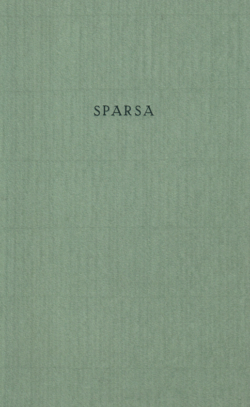 18. HANE, Jan Willem d’ Sparsa. Amsterdam, Regulierenpers, 1984. Ingenaaid met omslag. (20) p. Met de hand gezet uit de Baskerville en gedrukt in lichtgroen, donkergroen en zwart op Hahnemühle’s lompenpapier in een oplage van 40 genummerde exemplaren. 1e druk.
