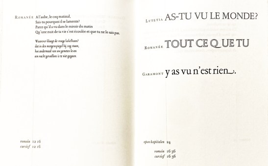 * ‘Blauw goud blank paars en incarnaat‘ beginnen deze twaalf gedichten. In tegenstelling tot het binnenwerk is het vezelige omslag wel door loden letters aangeraakt. Jaarwisselingsgeschenk 2001-2002.