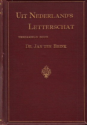 38. (WINKLER PRINS, A.). BRINK, Jan ten ‘Aan V. Winkler Prins op 19 Mei 1897′. Met de hand geschreven door Anthony Winkler Prins voorin het boek: Uit Nederland’s Letterschat. Comische en humoristische fragmenten verzameld en van eene inleiding voorzien. Amsterdam, Jan Leendertz & Zoon, 1893. Twee delen in één band. Verguld linnen. 220; 264 p. 1e druk. Iets schuingelezen, maar een mooi boek.