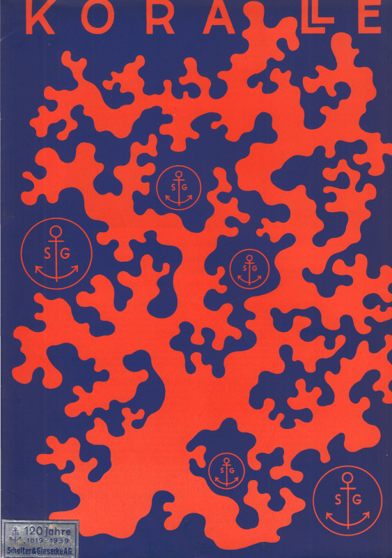 * De Koralle is een schreefloze letter die geïntroduceerd werd in 1913 en die in 1938 nog modern en tijdloos oogt. De voorbeeldadvertenties op de leporello zijn in het Duits en Engels (Amerikaans), maar ook in het Noors en Zweeds. De elegante Nederlandstalige advertentie daarboven loopt toch het meest in het oog.