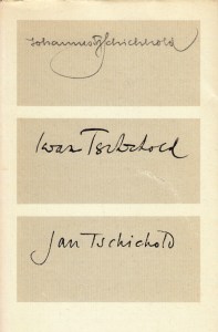 * Bijzonder leuk boekje, waarin Edith, de weduwe van Jan Tschichold (1902-1974) het stroomlijnen van diens naam, eigenlijk Johannes Tzschichhold, uit de doeken doet – maar ook (door Max Caflisch) een gedetailleerd inkijkje wordt gegeven in het ontstaan van de verfijning van een titelpagina door middel van opeenvolgende drukproeven, schitterend gereproduceerd. En dan heb ik het nog niet eens over de bijdragen van Alfred Andersch en Max Frisch (‘Jan Tschichold als Nachbar’), en het slot, een vertaling van een tekstfragment van Paul Valéry door ‘J.T’.’.