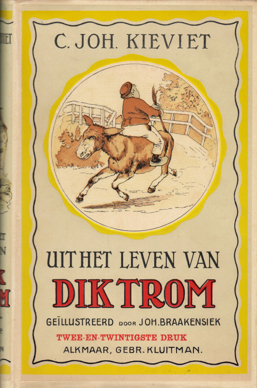 21. KIEVIET, C. Johan Uit het leven van Dik Trom. Geïllustreerd door Joh. Braakensiek. Alkmaar, Gebr. Kluitman, [ca. 1933]. Linnen met stofomslag, identiek ontwerp. 224, (4) p. Achterin geïllustreerde uitgeversreclame. 22e druk. Onwaarschijnlijk gaaf en fris, geheel onbepoteld, en dat voor een klassiek kinderboek van negentig jaar oud!