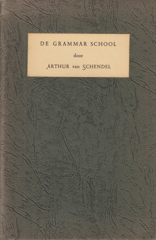41. SCHENDEL, Arthur van De Grammar School. [Haarlem], De Tuinwijkpers, (1965). Ingenaaid met omslag en titeletiket. (16) p. Met de hand gezet uit de Romanée en gedrukt op Ossekop-papier in een oplage van 40 genummerde exemplaren. 1e druk. Omslag aan de rand iets verbleekt.