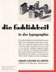 23. LUDWIG WAGNER AG, Schriftgiesserei und Messinglinienfabrik Mendelsohn Grotesk. Entwurf und Zeichnung von Georg Mendelsohn, Dresden. Gegossen von Nonpareille bis 6 Cicero. (Letterproef). Leipzig, Ludwig Wagner AG, (1930). 26 x 20 cm. Geniet. Paarsrood omslag met uitgestanst venster, waarachter we de melancholieke oogopslag van Georg Mendelsohn ontwaren. 16 p. Gedrukt met diverse kleuren. Met afbeeldingen en gevarieerde moderne voorbeelden van de Mendelsohn-Grotesk. Een klein colofonregeltje achterin verklapt datum en oplage: ‘287 XI.30 4000’. Kwetsbare uitgave in uitstekende staat, behoudens een heel klein vlekje voorop.