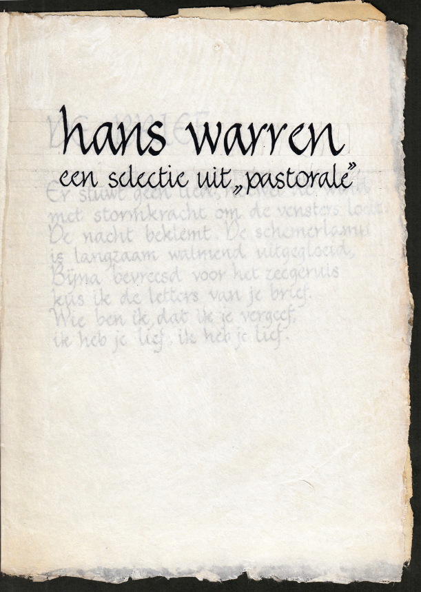 * Acht gedichten uit Warrens debuutbundel Pastorale (1946), fraai gekalligrafeerd in diverse letterstijlen door een anonymus. Geheimzinnig en bekoorlijk!