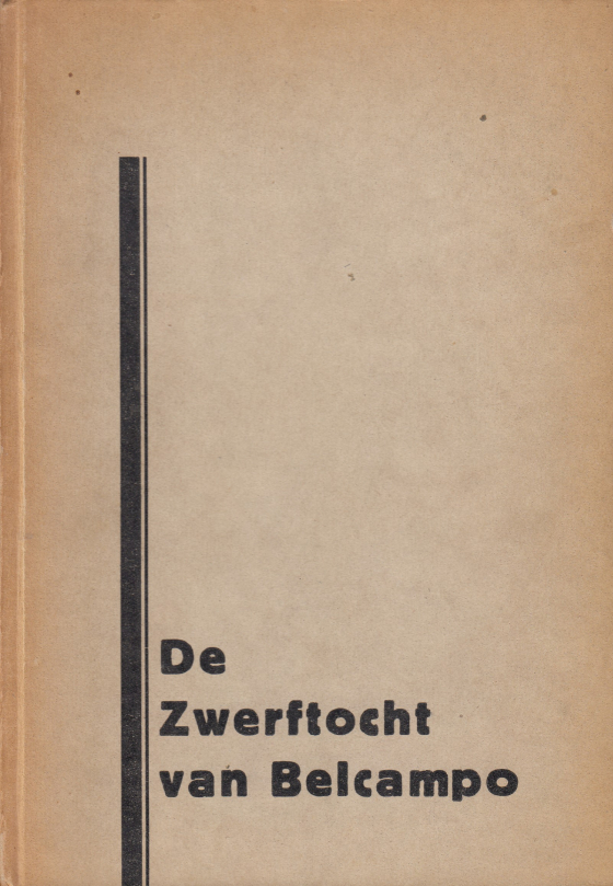 38. BELCAMPO De Zwerftocht van Belcampo. (Amsterdam, “De Arend”), [1938]. Karton. 244 p. 1e druk. Rug verbruind, maar een opvallend gaaf exemplaar. Van deze titel is de rug vrijwel altijd beschadigd, dit exemplaar heeft een gave rug!