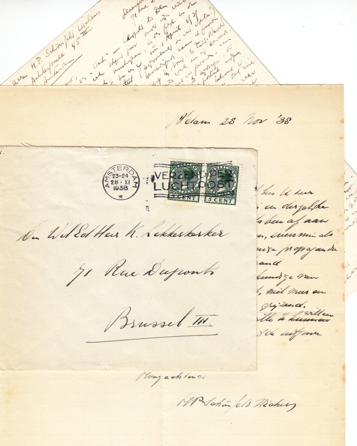 Bijgevoegd: afschrift van twee uitgaande brieven van Lekkerkerker, in diens kriebelige en moeilijk leesbare handschrift.
