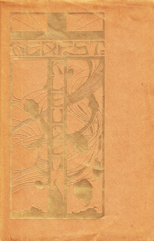 25. POST, Joh.E. Herfstkleuren. Overveen, eigen beheer, 1929. 25 x 16 cm. Ingenaaid. Rijke goudbestempeling. 40 p. Gedrukt in 250 exemplaren op geschept papier. 1e druk. Binnenin iets gevlekt.