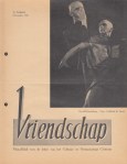 38. VRIENDSCHAP Vriendschap. Maandblad voor de leden van het Cultuur- en Ontspanningscentrum. Jaargang 6, 1951. Amsterdam, C.O.C., 1951. 27 x 20 cm. Twaalf losse nummers. Tien nummers van 12 p., het januarinummer heeft 8 p. en november (voor het vijfjarig jubileum) heeft 20 p. Geïllustreerd met foto’s en tekeningen. 1e druk. Bijna alle nummers met twee perforatiegaatjes, behalve augustus, september en oktober, die wat meer nietjesroest hebben. Hier en daar een scheurtje of een watervlek.