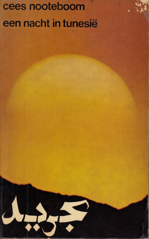 23. NOOTEBOOM, Cees Een nacht in Tunesië. (Gesigneerd met opdracht aan W.L. Brugsma). Amsterdam, De Bezige Bij, 1965. Ingenaaid. 240 p. Achterin 48 pagina’s op oranje papier. 1e druk. Iets aangedaan, sporen van verwijderd plakprijsje. Watervlek op de snede.