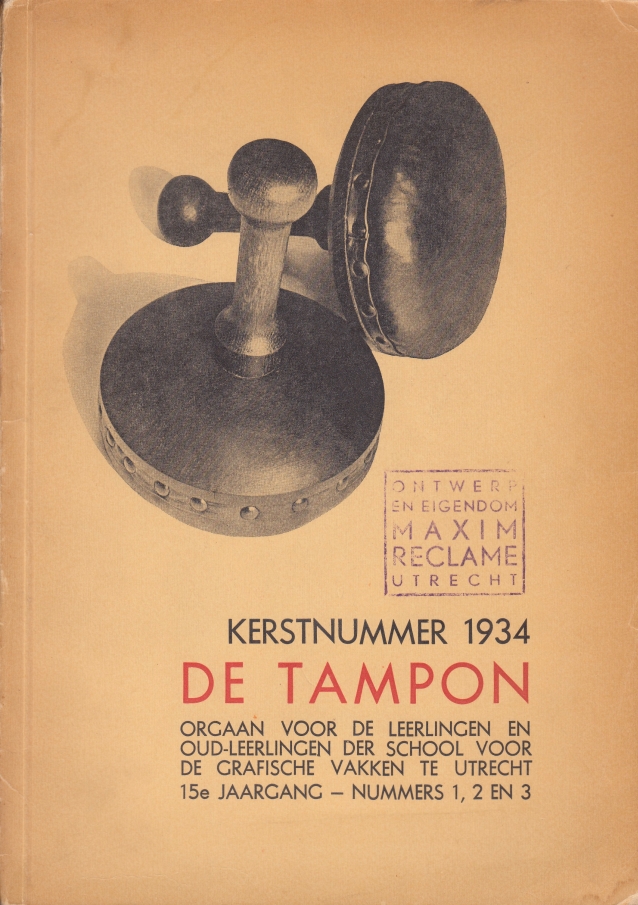13. GRAFISCH TIJDSCHRIFT De Tampon. Orgaan voor de leerlingen en oud-leerlingen der school voor de grafische vakken te Utrecht. 4 verschillende kerstnummers: 1924, 1934, 1940 en 1947. Utrecht, School voor de Grafische Vakken, 1924-1947. Geniet. Ca. 80-192 p. per nummer. Voorzien van ingeplakte bijlagen. 1e druk. Met de kleurige omslagen. Wat slijtage en verkleuring, stempel van een eigenaar voorop 1934. Van 1924 en 1940 ontbreken een paar ingeplakte bijlagen.