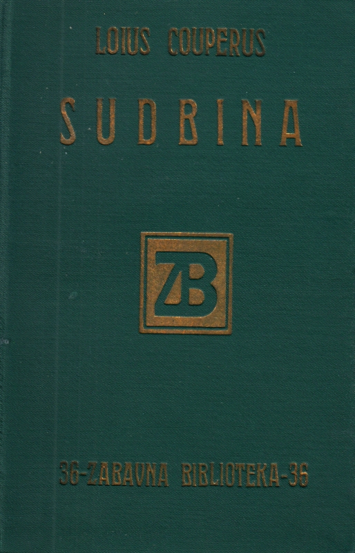 8. COUPERUS, Louis (Noodlot. Als:) Sudbina. Roman nesretnih ljubavnika. Zagreb, Nakladom Kr. Zem. Tiskare, 1915. Zabavna Biblioteka, red. Nikola Andric. Soepel linnen. 144 p. 1e druk. Net exemplaar.