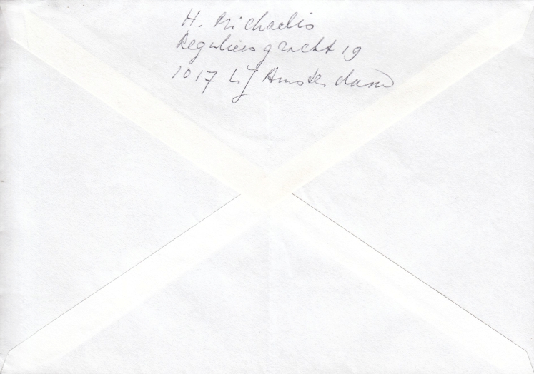 30. MICHAELIS, Hanny Wie bij daglicht. Handschrift in inkt. 10,5 x 14,7 cm. Alleen recto. Gesigneerd. In door de auteur geadresseerde envelop, met op de achterzijde haar naam en adres in handschrift. Datum poststempel 26 juli (?) 1986.