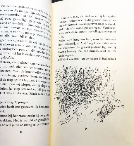 * Uitvoerig fragment, in feite een mooi kort verhaal, uit een brief aan Frida Vogels, geïllustreerd met drie kleurlino-portretten van Hanny Michaelis (het gaat in dit boek over haar begrafenis), J.J. Voskuil en Van Heest zelf met kat.