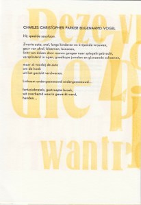 11. CAMPERT, Remco Bij uitstek jazz. [Groningen], (Marlies Louwes), 2005. Ingenaaid met omslag. Met de hand gezet en gedrukt in een oplage van 75 exemplaren. Paar vlekjes op omslag.