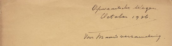 * Een kennelijk door de schrijver bijeengevoegde collectie van 6 gedichten die alle precies gedateerd zijn, het eerste ‘Vrijdag-op-Zaterdagnacht 16-17 October 1936’ en het laatste ‘Vrijdagmiddag 30 October 1936. Het haastige handschrift oogt alsof de gedichten vers uit de pen zijn gekomen en de dateringen kort na het ontstaan zijn toegevoegd. Bevat de gedichten ‘De Gezondbidder’, ‘Egypte I’, ‘Egypte II’, ‘Simon Stylitus I’, ‘Simon Stylitus II’ en ‘Afgezette Koning’. Misschien gebruikt voor publicatie in een tijdschrift: het nummer duidt op gebruik als kopij, in het jaar 1936. Twee jaar later werden de gedichten opgenomen in de dichtbundel Kaleidoscoop.