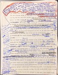 2. Origineel handschrift in potlood. 19,4 x 12,9 cm. Drie bladen gelinieerd papier, alleen recto. Met veel doorhalingen, correcties en aanvullingen. Het betreft waarschijnlijk een deel van het handschrift van éen van de verhalen uit De toverlantaarn van het Christendom of Rozen op de rails, de twee bundelingen van Belcampo’s heiligenlevens.