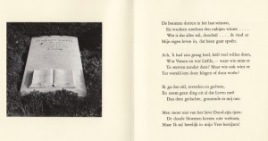 * Over deze uitgave kunnen we nergens informatie vinden. Ons werd verteld dat Arjen Ribbens de samensteller zou zijn en dat er eigenlijk twintig vouwbladen in de doos horen te zitten: Richard Minne zou ontbreken. We hebben een paar exemplaren van deze uitgave, allemaal gevuld met 19 vouwbladen. Maar wat een smaakvolle uitgave: 19 prachtige vouwbladen, gedrukt in boekdruk op Hollands papier, allemaal voorzien van een ander ornamentje op de voorzijde, met een eigen colofon en met een ingeplakte foto van het graf van de betreffende dichter. En dat in een decoratieve doos. Poëzie van Jacques Perk, Jacqueline van der Waals, Frederik van Eeden, J. Slauerhoff, Albert Verwey, Willem Kloos, E. du Perron, P.C. Boutens, Martinus Nijhoff, P.N. van Eyck, Gerrit Achterberg, J.C. Bloem, Pierre Kemp, Gerard den Brabander, Jan Hanlo, Ed. Hoornik, S. Vestdijk, Victor van Vriesland en A. Roland Holst. Een lezer van deze nieuwsbrief deelt mee dat de van 1982-1985 actieve Haarlemse margedrukker Leo Vos verantwoordelijk was voor het drukwerk van deze doos.